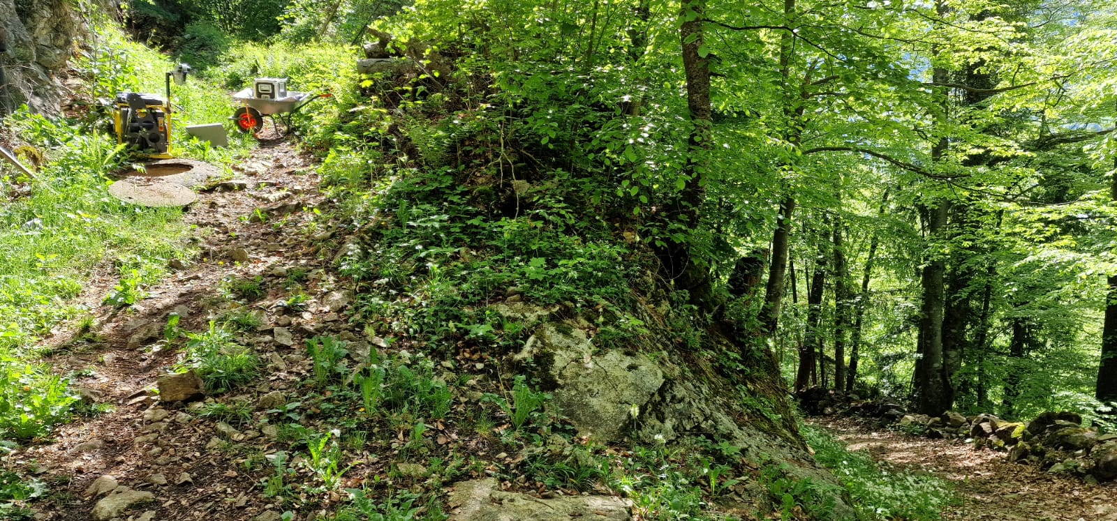 The TV inspection started from the top of the mountain. For this purpose, the compact camera tractor system MainLite fit was brought to the starting point in the village. From there, the sewer reaches were accessed via the manholes located along the steeply sloping hiking trail down into the valley.