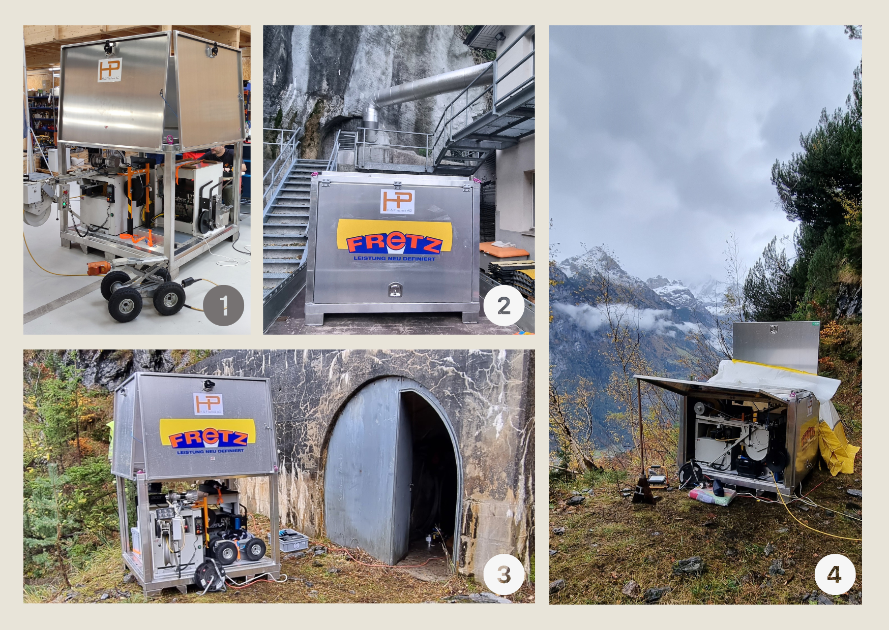 H & P Technik AG, le partenaire de distribution et de service IBAK en Suisse, construisit une caisse de transport en aluminium adaptée au mode de transport par hélicoptère dans laquelle fut placé un équipement IBAK complet, opérationnel dès son arrivée sur place.