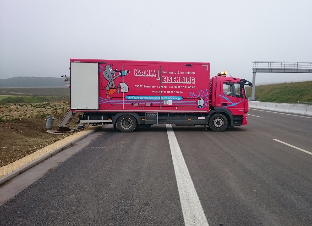 Im Frühjahr 2012 hat der Ausbau der 22,6 km langen Strecke der A 8 zwischen Ulm-West und Hohenstadt begonnen. Der Verkehr soll in diesem Streckenabschnitt voraussichtlich bis Ende 2018 auf sechs Spuren rollen. Das von den Fahrbahnen anfallende Niederschlagswasser ist stark belastetet und wurde bisher über die Böschung versickert. Zum Schutz von Grundwasser und Boden werden bei den Bauarbeiten die Autobahn und die Böschungsbereiche nach unten abgedichtet. Sämtliches Oberflächenwasser wird gefasst und in eine Reihe von acht Rückhaltebecken geleitet, in denen das Niederschlagswasser gereinigt wird. Im Rahmen dieser umfangreichen Baumaßnahme sollten hier die Rohrleitungen entlang der Straßenführung untersucht werden.