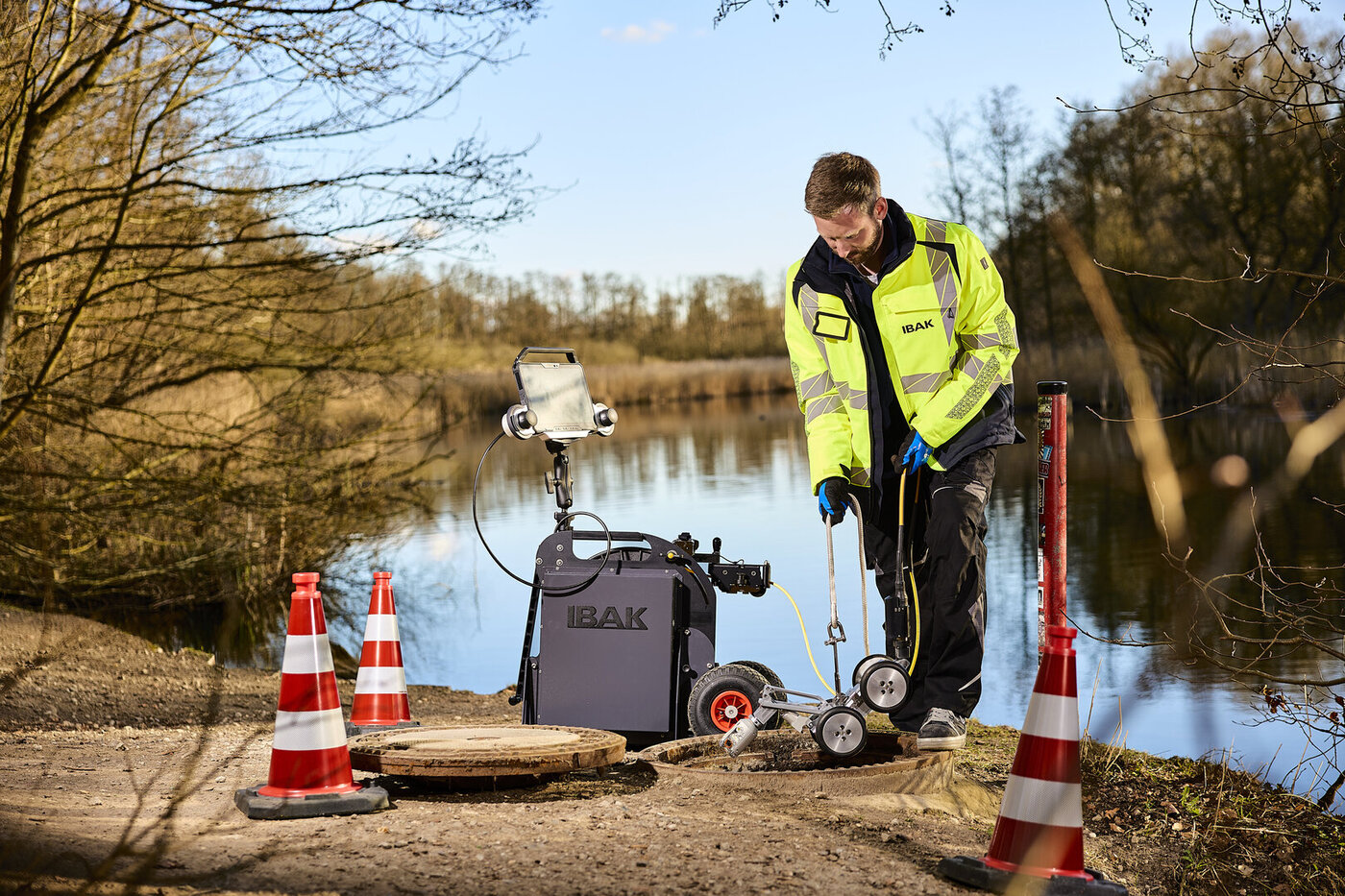 Die ASPECTA ermöglicht die schnelle Zustandserfassung und Bewertung von Abwasserleitungen aus einem angrenzenden Schacht.